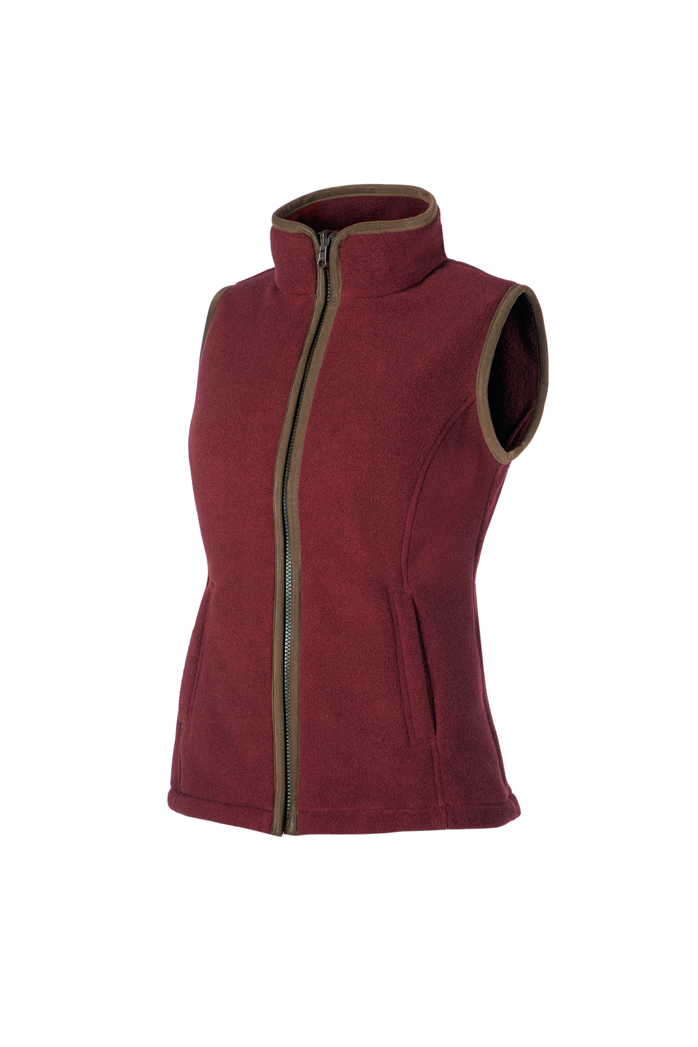 Beschrijving: Deze luxe damesbodywarmer van fleece, afgewerkt met kunstleer, kan afzonderlijk gedragen worden of als voering voor de Baleno Berrygrove of Kensington . Ruglengte maat M: 60 cm.